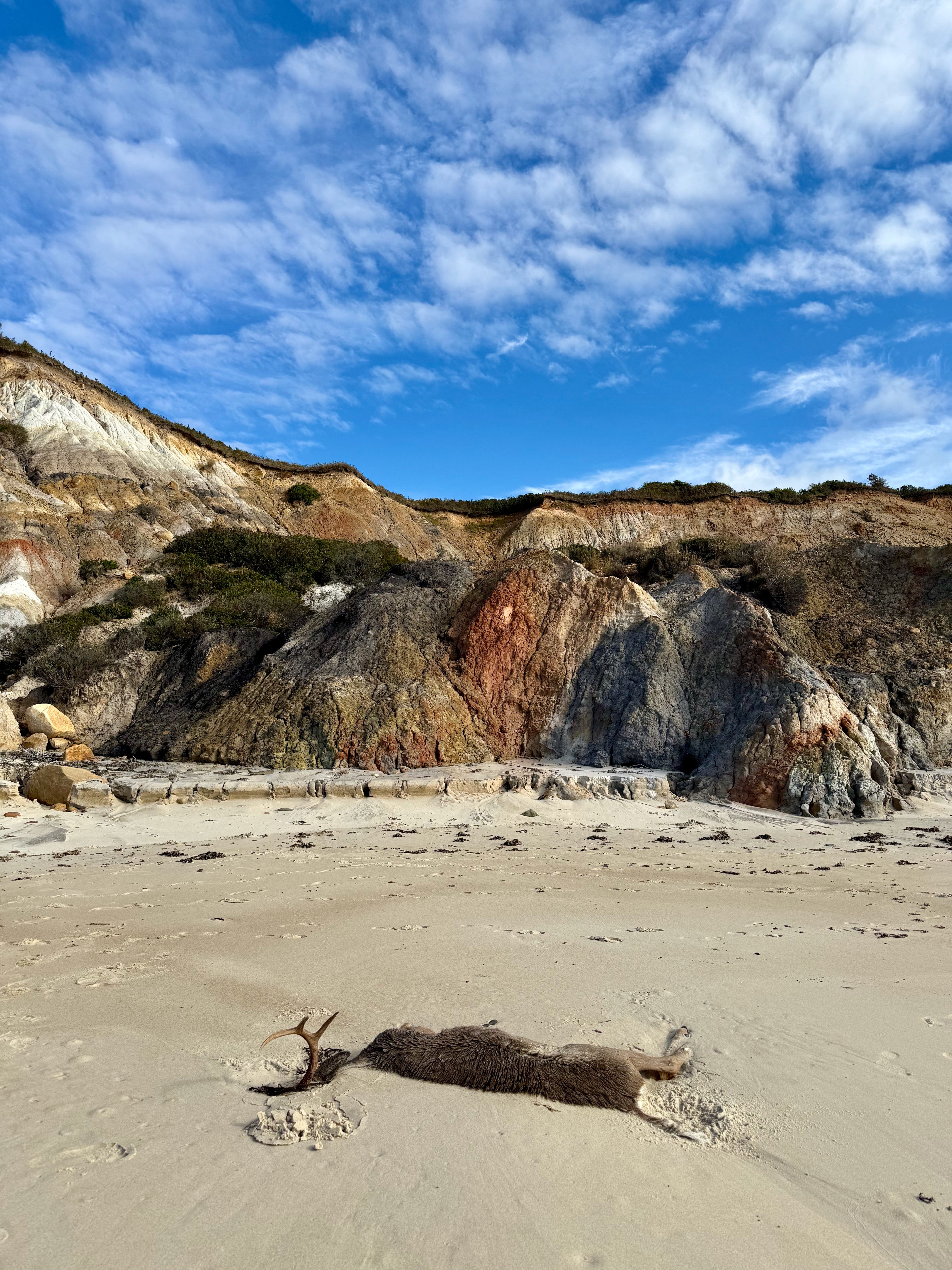 Back in October, I wrote about a dead deer I found on a cliff-framed beach on Martha’s Vineyard.