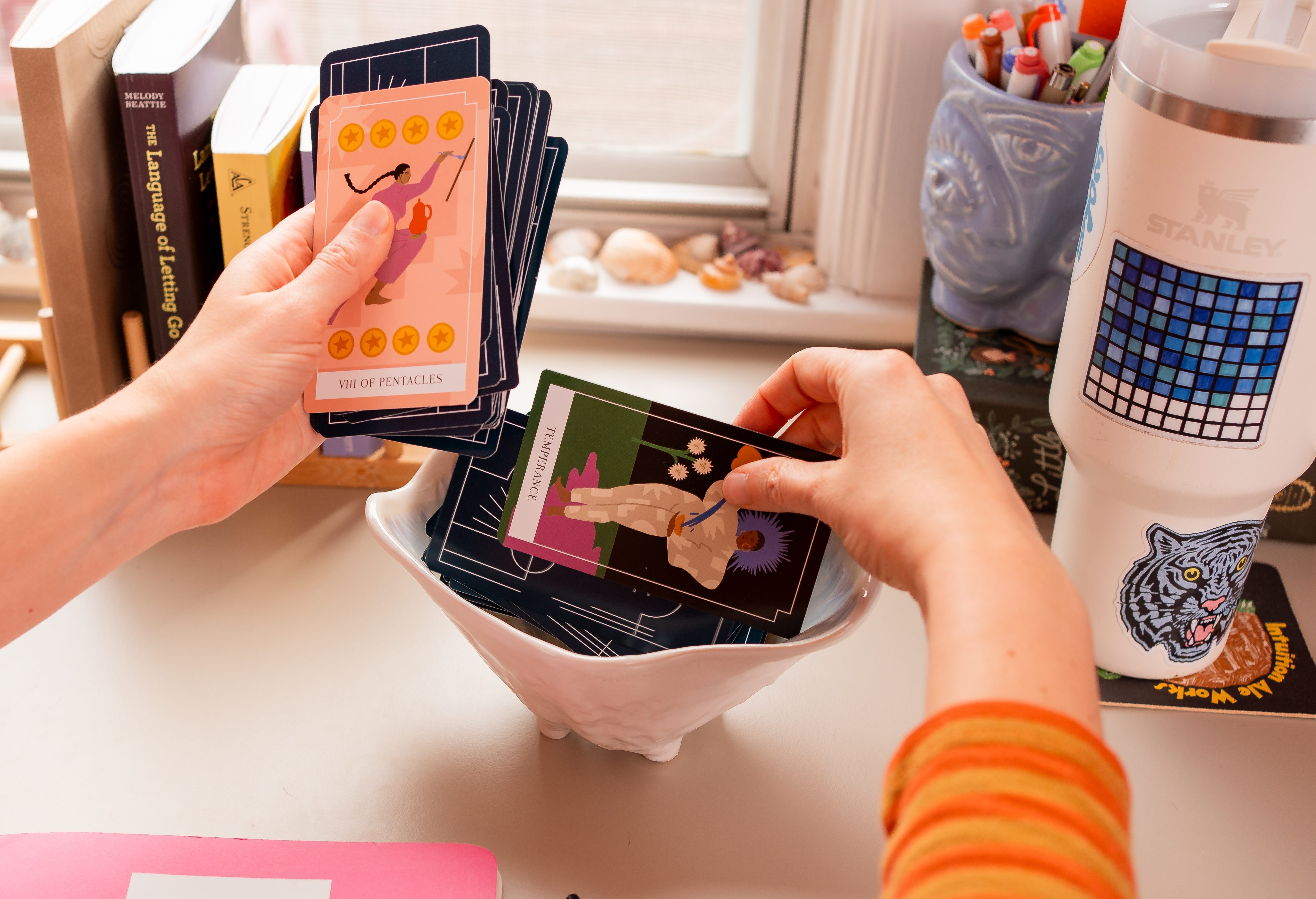 Lexi fanned out her deck for me, which is how I like to pull. People who pull cards looooove to talk about the methods behind their pulls. How long do you shuffle, if you even shuffle at all? Do you cut the deck? Fan it out? Select straight from your hands?